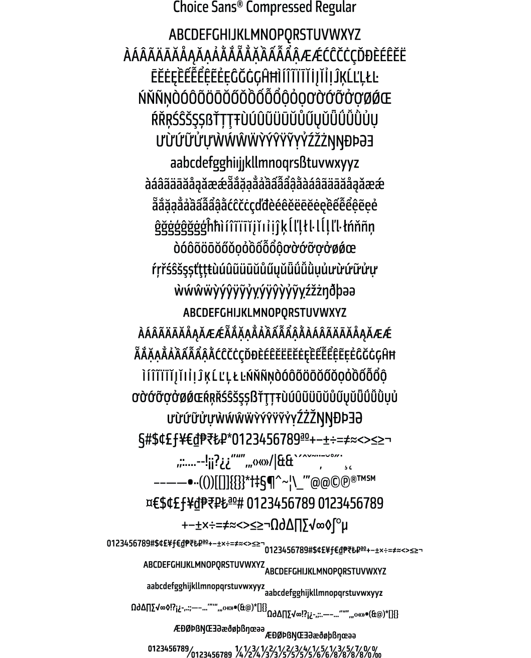 In my quest to have an original typeface library that covers all of the major genres I realized I was lacking a true square sans serif design. I had toyed with a square sans years ago when I was developing the Clearview fonts. One of the key details of the Clearview design that helps its functionality are the slightly square counter shapes that work in opposition to the more elliptical outer shapes. So if this was true would a more completely square design improve performance? I developed this family in a similar structure to ClearviewText. Three widths, twelve weights per width with some simple obliques for contrast. I did not have the resources to test this new design with the rigor that went into the Clearview project but to my eyes Choice Sans has the potential to perform well in applications where legibility is paramount. I’m currently using it as my email client font and it looks great on-screen with no additional engineering.
