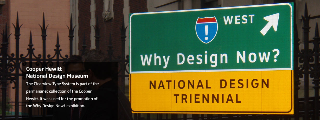 Clearview type system for text, display, roadway and interior guide signage. In 2004 the 13 font