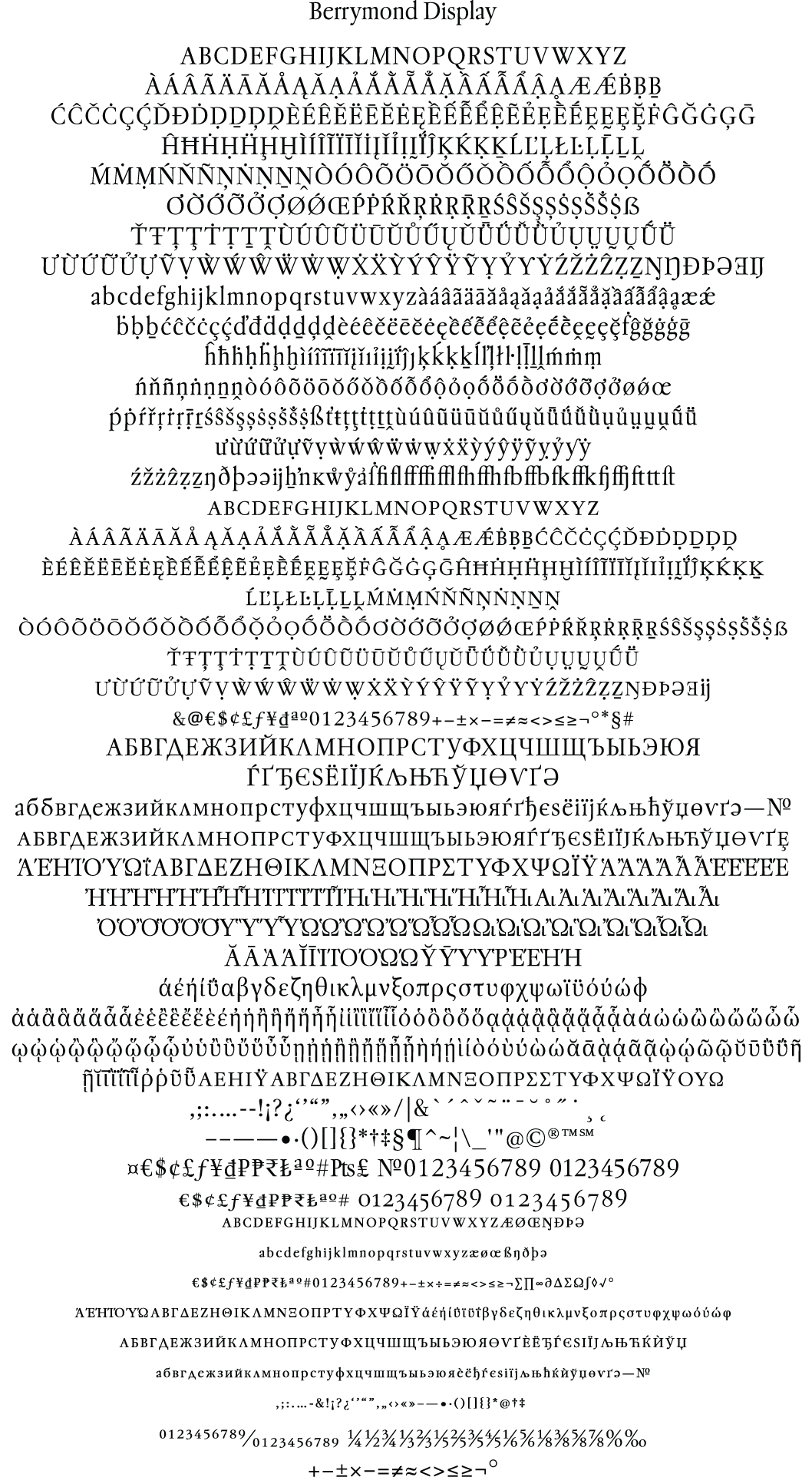 After years of the basic alphabet sitting around I decided to build it into a full-fledged display design. I suppose you could say I got carried away. The design includes Extended Latin including IPA, Vietnamese and most of the Latin Extended-A, -B , -C, -D and -E. It also includes Mono and Polytonic Greek. Cyrillic and Extended Cyrillic are in there as well.